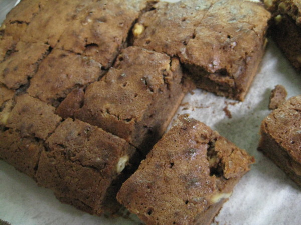 2.我用的巧克力是七七的巧克力磚,還是牛奶巧克力(嘆),不過也是很好吃喔^^。想來也很久沒有買德芙了呢!布朗尼的巧克力成分好高,巧克力的種類多少會影響口感的吧?