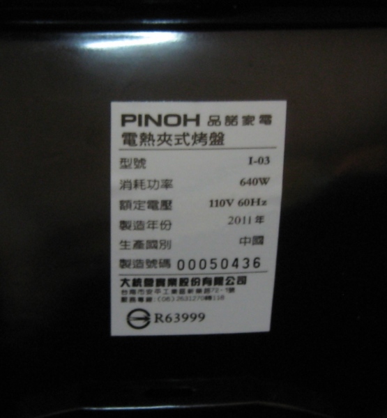 在pchome買了一隻鬆餅機,PINOH I-03,上星期六(?)送來的。