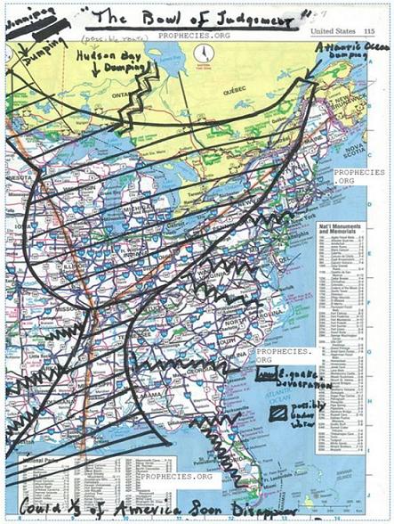 我特地尋求 神給我一張將發生毀滅之地的地圖。我問 神:如果人們不在 神面前下跪,不深刻悔改,它可能是怎様的結果!在尋求 神一些日子之後,我們的天父給我一張地圖,和關於即將到來的災殃的訊息。
