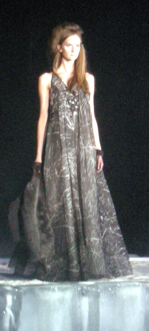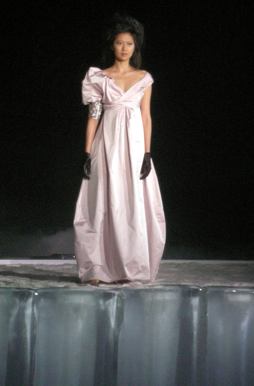 陳季敏今年秋冬發表,選在小巨蛋的冰宮(靠~真的好冷),一走進去,超過百公尺的舞台相當嚇人,整個用冰搭建起的伸展台,也頗有氣勢,看來花了不少銀子。