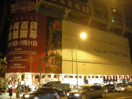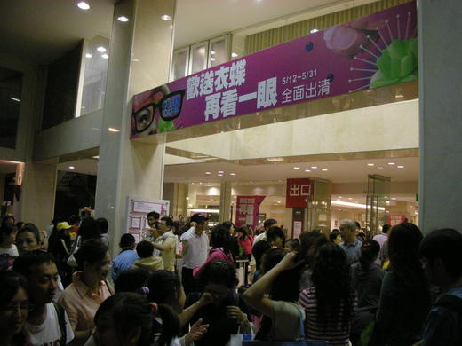 中興的最後一夜,倒是可惜了。曾經引領時尚潮流,以「流行百貨」自居的中興,最後的一夜竟在如同夜市拍賣的吵雜聲中結束。原本引以為傲的文化櫥窗,早就被品質如夜市般的攤販阻擋,其他樓層也充滿了拍賣的叫聲。裡面只有二樓國內設計師維持格調,默默的迎接這一刻的到來,優雅的謝幕。