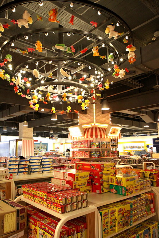 專為孩子設計的八個玩具主題區—玩具區、交通玩具區、機器人玩具區、益智啟發玩具區、卡通動漫玩具區、娃娃玩具區、幼兒玩具區及手創DIY區台灣首創31音階地板鋼琴,音效結合童趣的創意,每一次玩樂都能創作出不同的樂章
