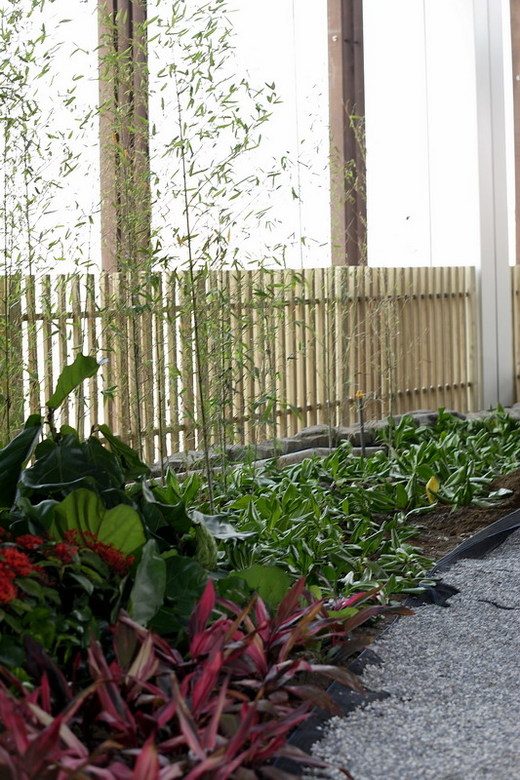 而內部裝潢則如同北市新開的京站,很多地方採用黃色的柔和燈光,加上木質調來裝潢,而部分區塊的裝潢也會讓人想到信義誠品,與重新裝潢的敦南誠品,露天公園的概念也讓人想到 SOGO 復興的空中花園,而把流水搬進百貨內,包括京站、遠百花蓮店都有類似的概念。