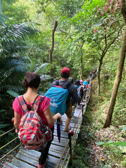 這兩天一夜的行程,本是安排砂卡礑步道、大禮部落、錐麓古道,無奈錐麓古道太熱門,我們這團人數又多無法全數抽中,最後只好改行程,改白楊瀑布。在此謝謝土城山岳協會的精心安排,還有各位響導及領隊的帶領,及準備食材還有烹飪的高級廚師。