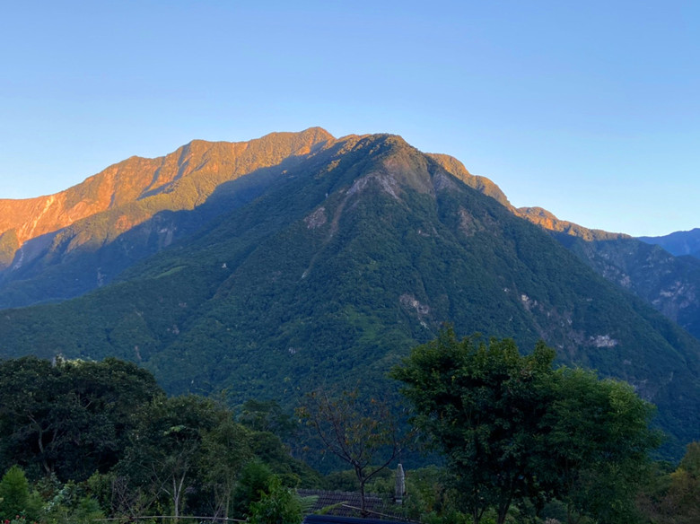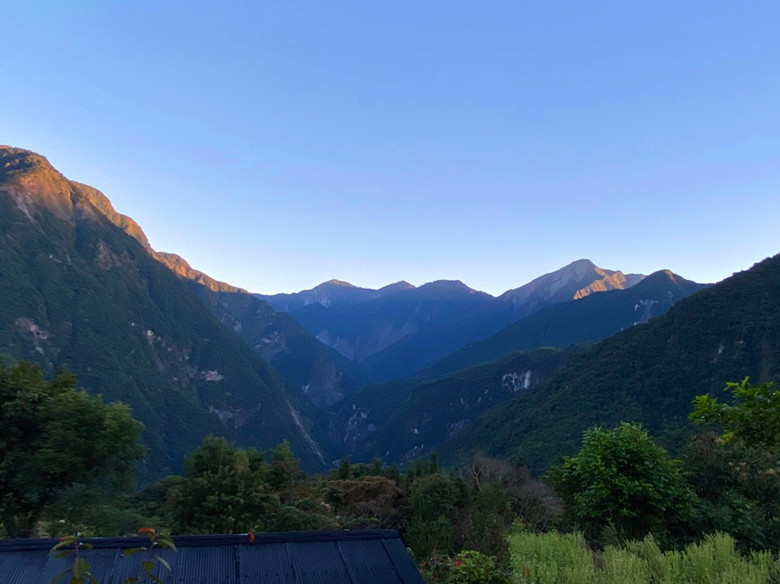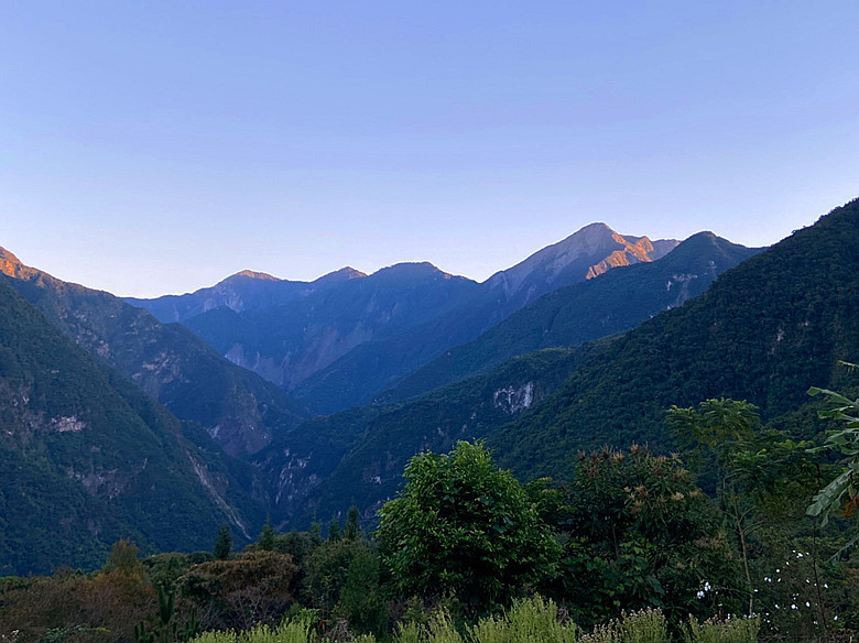 晨光撒在山頭整個淡藍色系是這麼迷人與清新,鼻息間更是舒爽通透心靈。