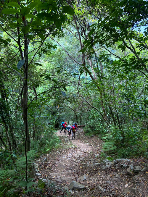 響導、領隊很貼心每次都幫大家準備著午餐,帶著鍋碗瓢盆在定點幫隊友煮午餐供大家食用,休息後再上路登高峰。這次食材準備得有點過剩,還沿路吆喝著路過遊客一起享用,真叫人感激又感謝。
