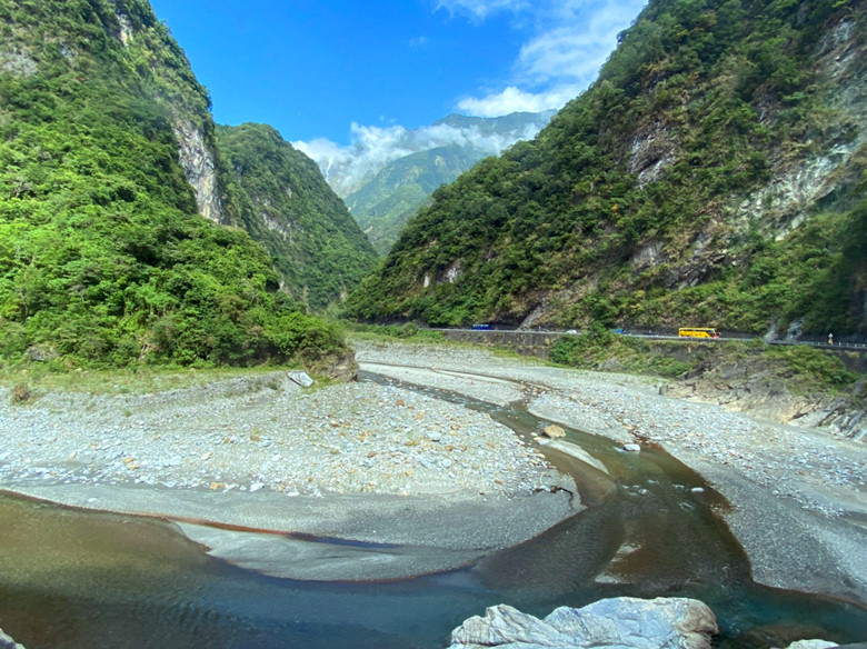 一早天未亮就準備就緒前往集合點,車上有準備包子還有卡拉OK,沒想到大家都有一副好歌喉,讓我聽得如癡如醉,一路歡唱到花蓮。當初好怕連假高速公路上會大塞車,沒想到一路順暢很快就到了太魯閣公園砂卡礑步道,下車後大家整裝出發。