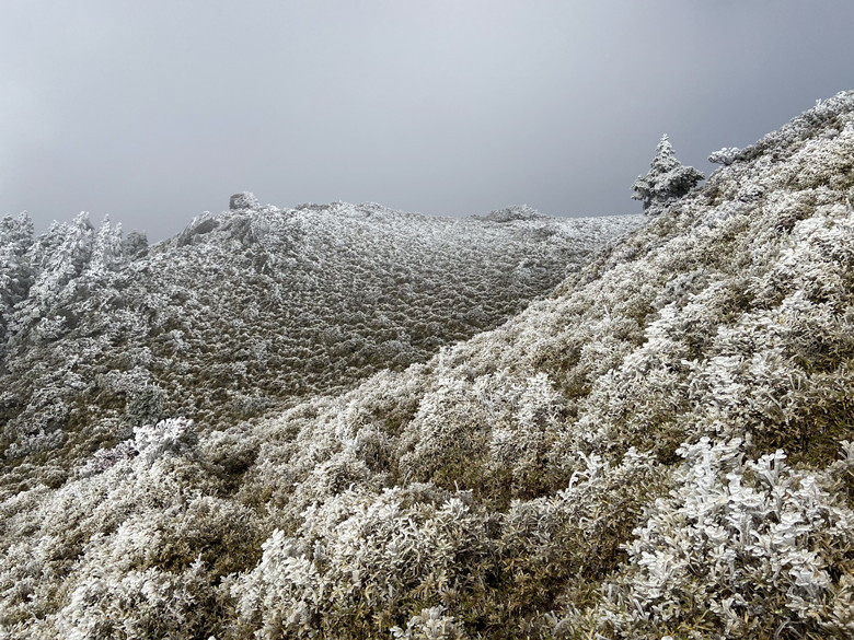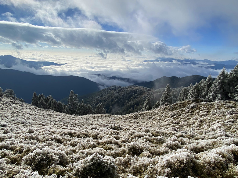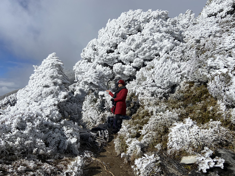 樹被覆蓋一層厚厚的雪,現場看很壯觀、震撼。