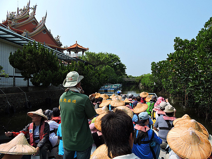 2.由七股南下至安明路→右轉本田路→左轉四草大道直行約一公里左轉,抵達四草大眾廟,即可於大眾廟旁找到四草態綠色隧道售票、搭船處。