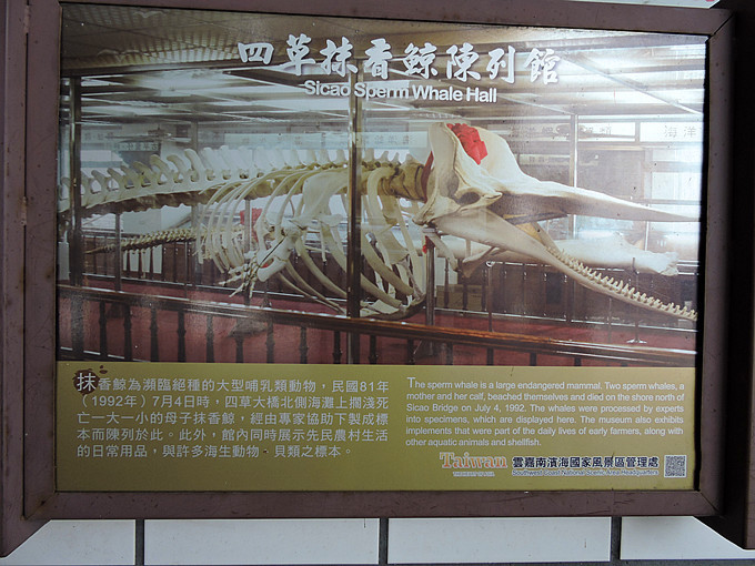 抹香鯨陳列館 位於大眾廟的東側,抹香鯨名稱是來自其所產 之龍涎 香。 因龍涎香的經濟價值高,人類濫捕,抹香鯨已濱 臨絕種,國際 已將其列為被保護動 物。抹香鯨陳列館內存放 一對母子鯨魚的標本 ,是目前國內最大、最完整的標本,同時亦展示先民所使用的生活 用具,極具觀賞價值。