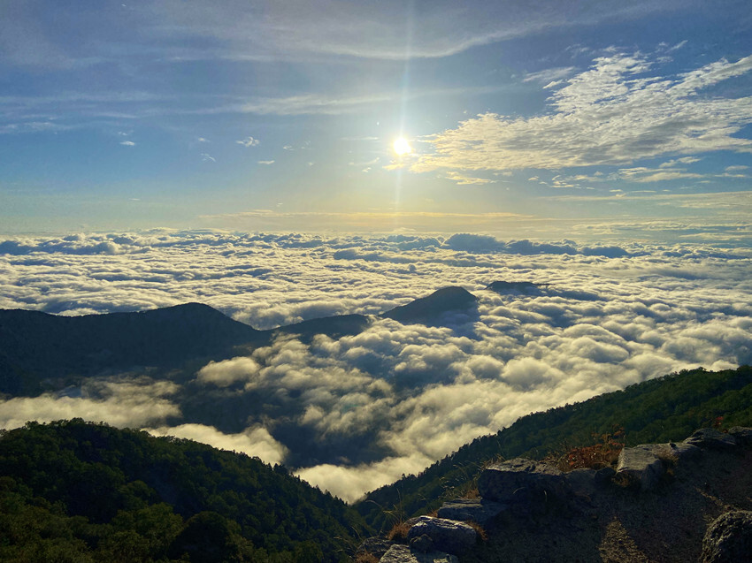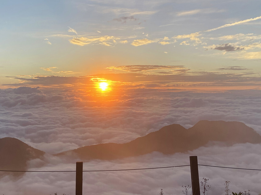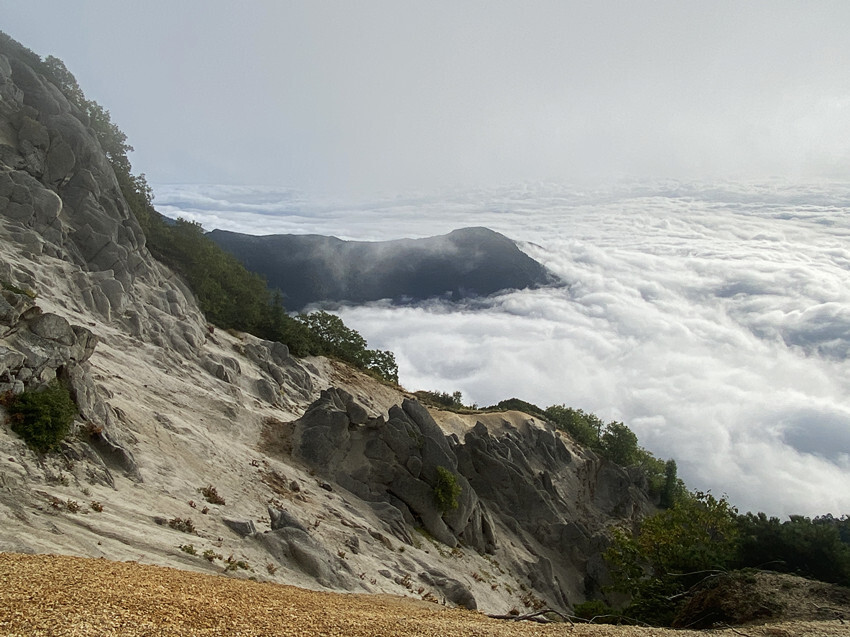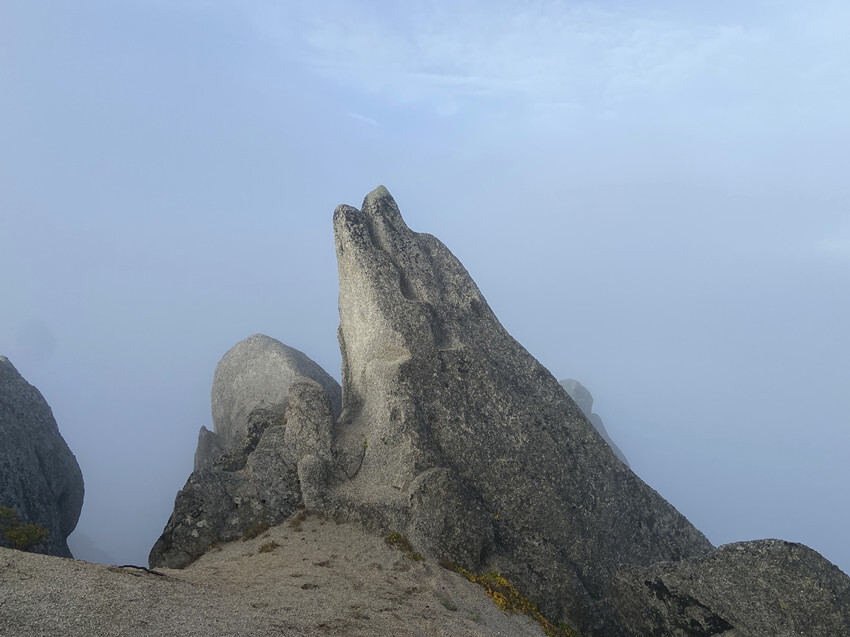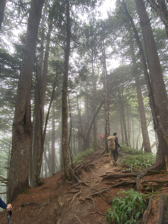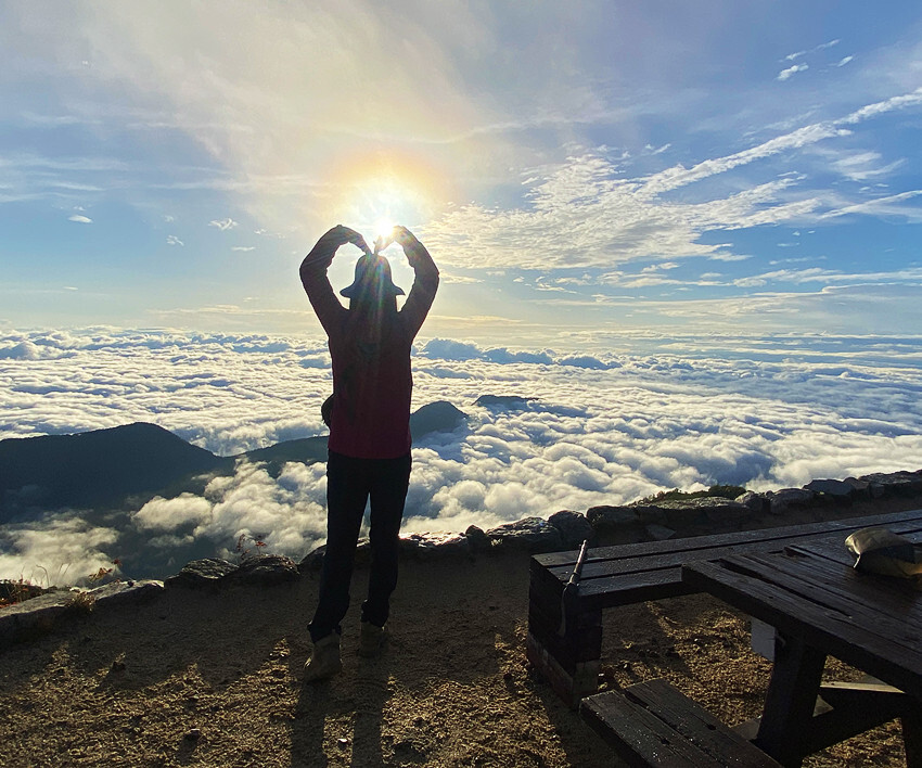 一路氣喘吁吁,當來到燕山莊喜悅之情溢於言表,再來等分配床號安頓好今晚住宿,及享用山莊的晚餐。第二天早餐後往燕岳出發,這時還雲霧繚繞,空氣中有點冷,走著、走著煙消霧散,景觀也一一出現眼前,原來稜線這麼美,視野一望無際,雲海洶湧澎拜,讓人捨不得離開想多待一會,無奈後面還有很長的路要走。