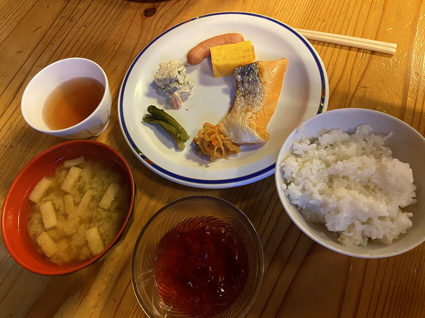 第二天的早餐,這有點吃不飽的感覺,待會要翻山越嶺到下一個山莊,所以白飯要多吃一點。