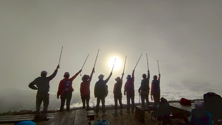 經過一晚休息大家精神抖擻準備搭車往登山口出發