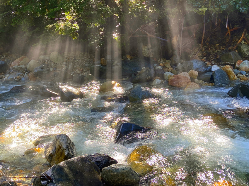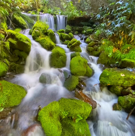 因昨天下過雨,水量很充沛,溪流變得如夢似幻。
