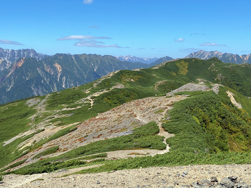 後面稜線是槍穗縱走,是我們原本路線,原來我們這麼勇敢。