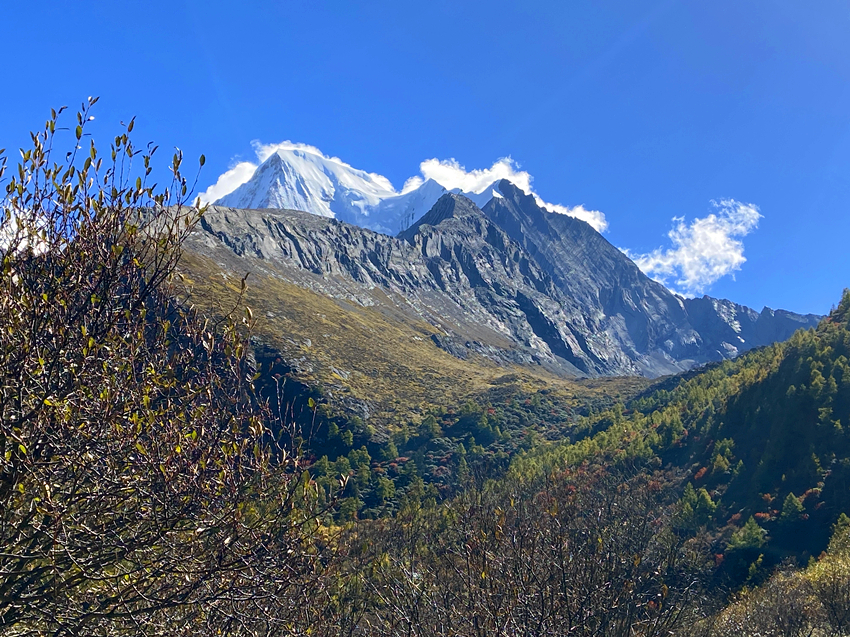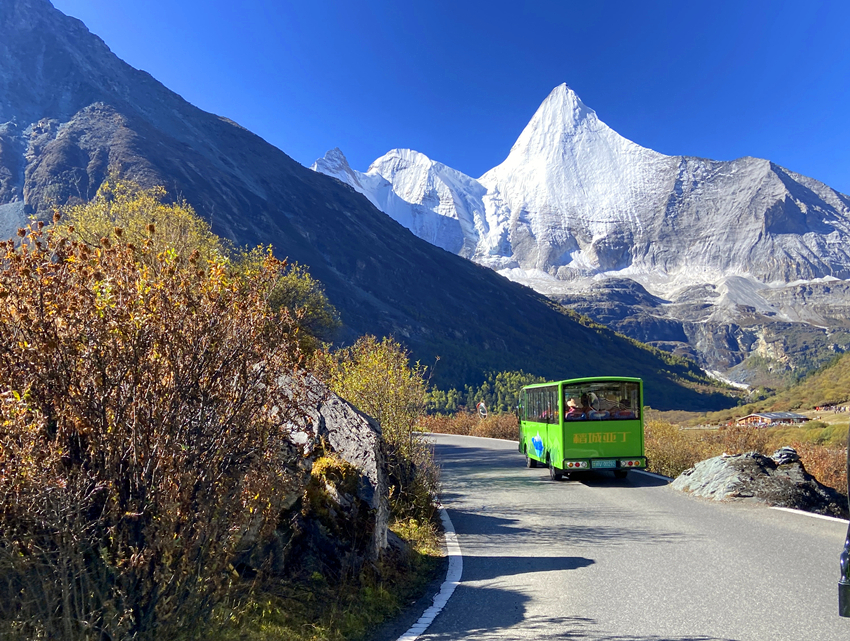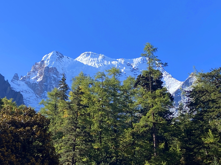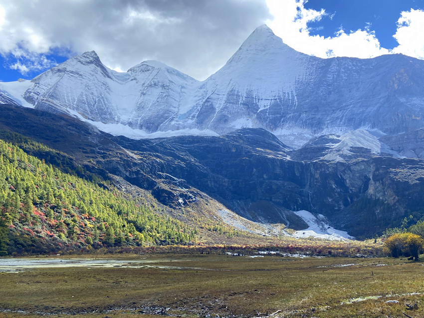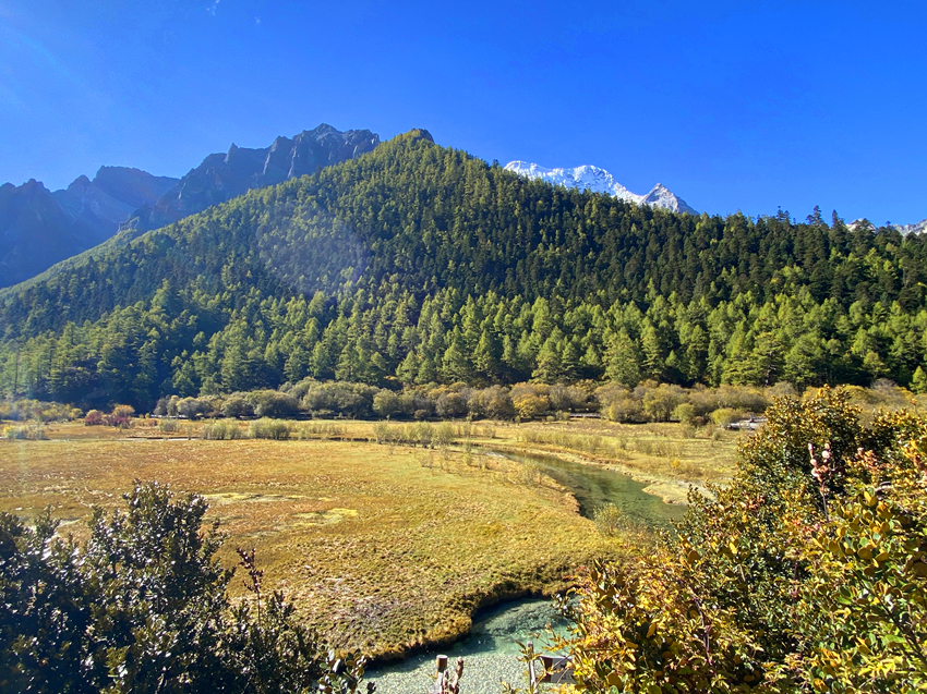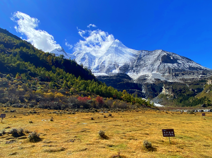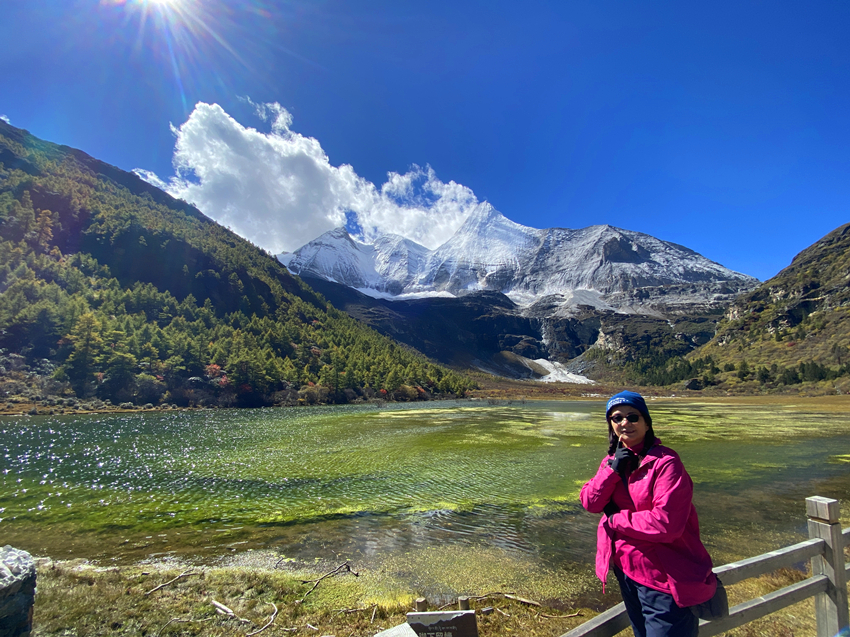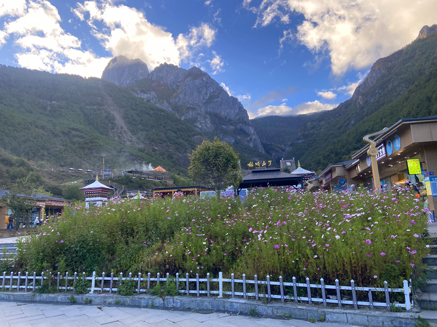第四天進入主題稻城亞丁景區,先搭接駁車再換遊園車到終點站洛絨牛場,下車後直接被眼前的景致迷惑,宛如世外桃源,不由自主雀躍起來,怵然想起動作要緩慢,要溫文爾雅淑女一點,不然會影響到後面行程。
