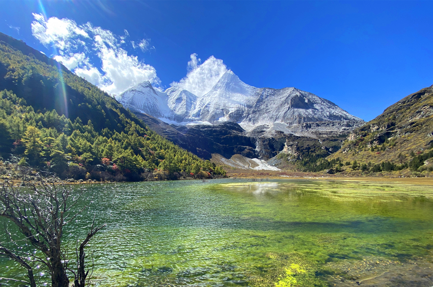 貢嘎湖宛如綠翡翠般通徹透明
