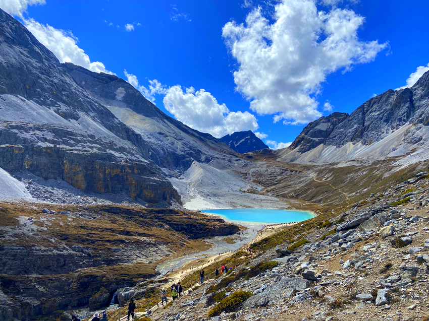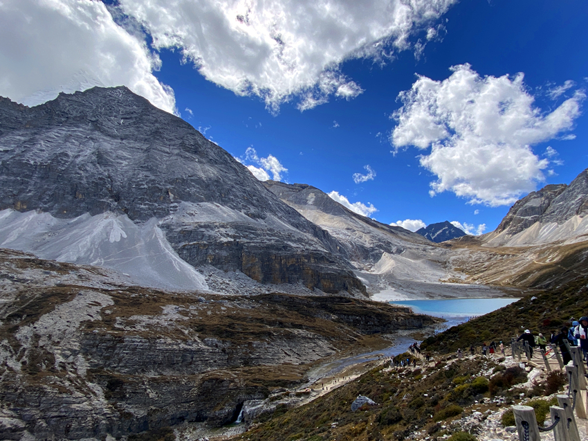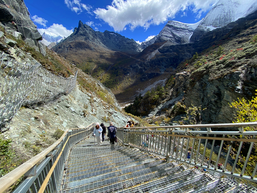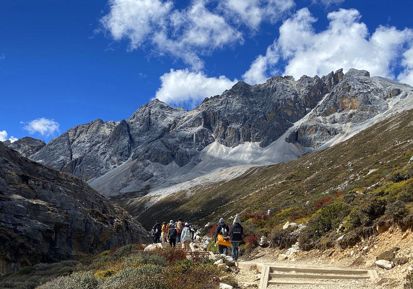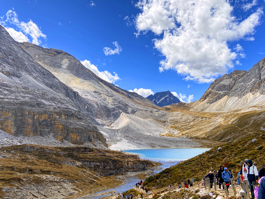 稻城亞丁景區設置了兩條徒步路線: 金剛線,就是俗稱的「長線」,所謂的長線是指由洛絨牛場開始到牛奶海,再登頂五色海,全程需要在高海拔地區徒步10公里,來回需要6至7小時左右,這對一般人來說不僅是心理上的考驗,更是生理上的負擔;而短線就是由沖古寺到卓瑪拉措,再到仙乃日,來回僅需2小時,且步道相對親民許多。