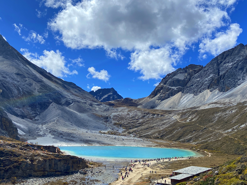 牛奶海它位於四川省甘孜藏族自治州稻城縣亞丁風景區的央邁勇神山腳下,名稱由來,因為湖泊周邊有乳白色的沉積物,這是鈣質沉積所致,讓湖水看起來像牛奶一樣, 因此也被稱為四川牛奶海。
