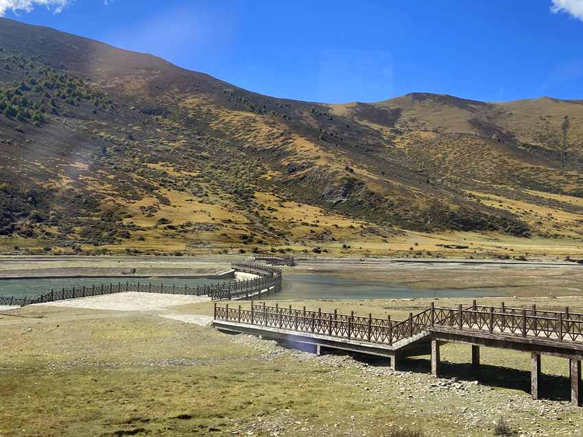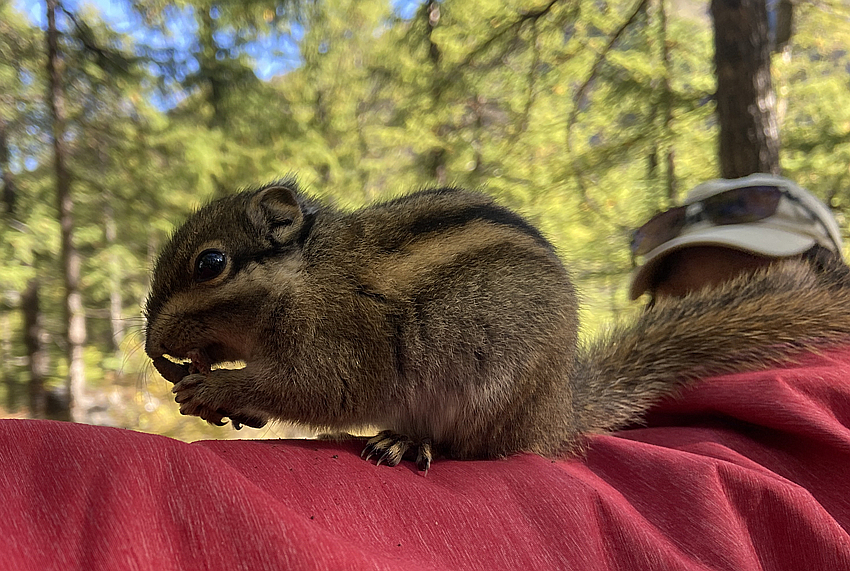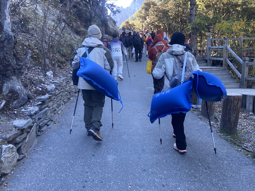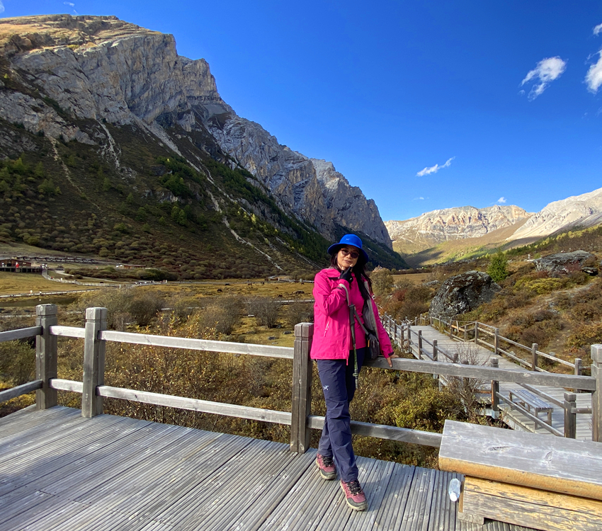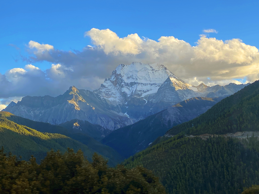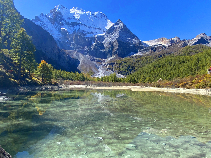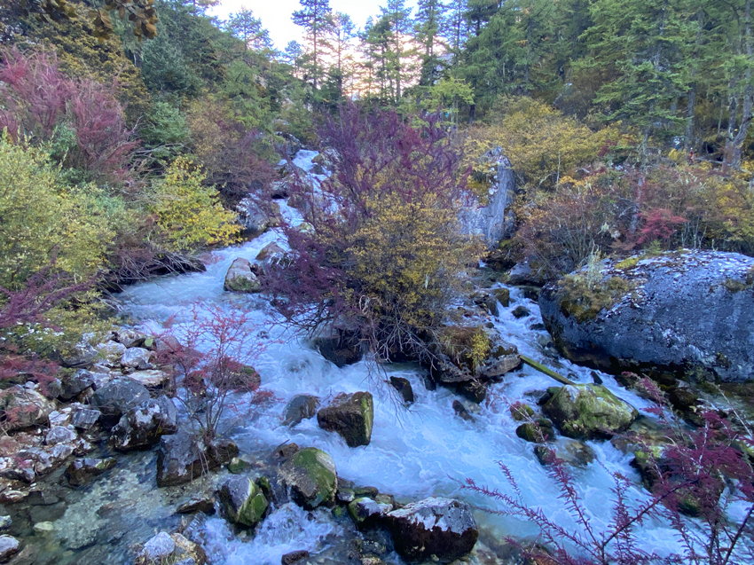 第五天二次進稻城亞丁景區走另一條路線,沖古寺、仙乃日山下卓瑪拉措聖湖,一樣搭接駁車上山,人潮一樣如織,氧氣瓶、氧氣袋一個比一個多。響導帶我們走人煙稀少的步道拾級而上,沿途鳥類、猴子、松鼠頗多且不怕人,甚至鳥兒還會在面前盤旋。午餐就在卓瑪拉措聖湖旁享用,欣賞湖光山色,也深深被仙乃日神山的氣勢磅薄所吸引。