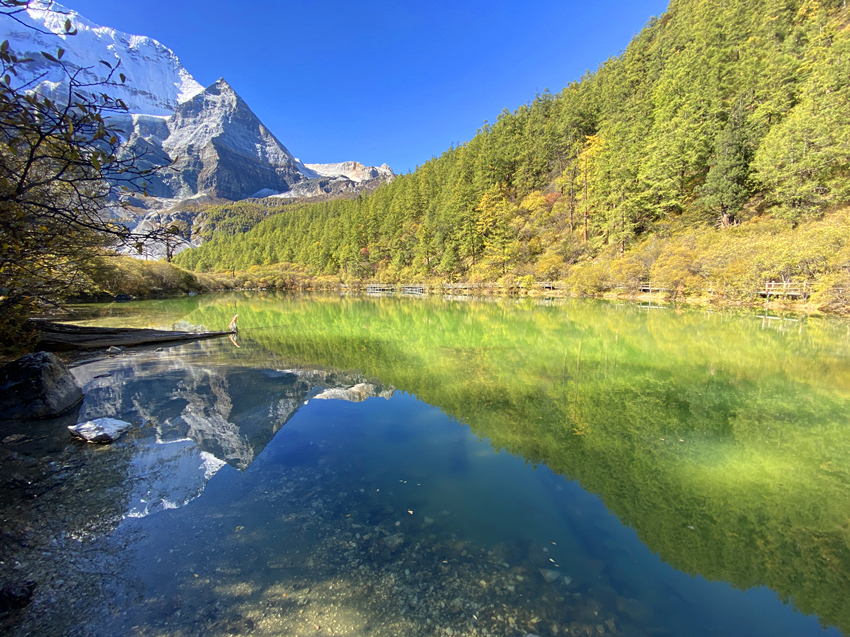 卓瑪拉措聖湖標高4100m倒映著仙乃日神山