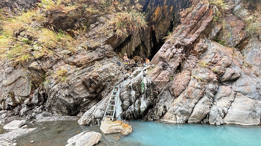 爬上階梯就是天然洞穴溫泉池