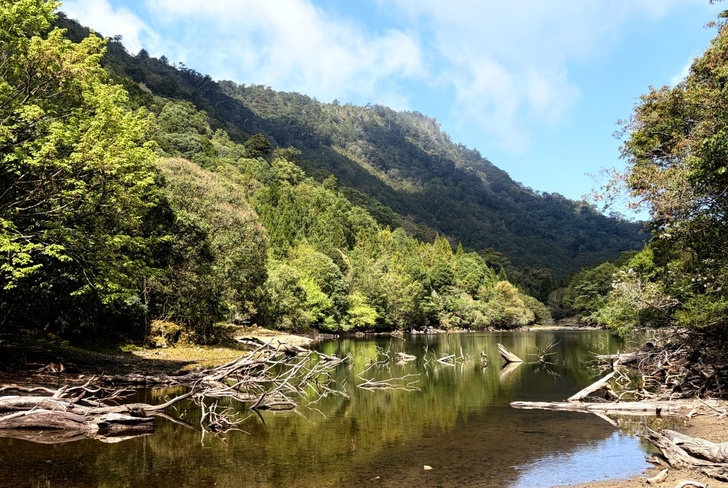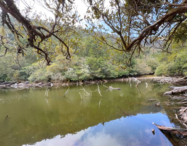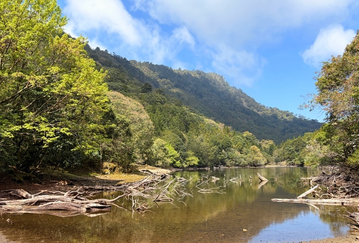 如果卑南主山是考驗意志的試煉場,那石山秀湖就是山神在終點前佈下的溫柔鄉。穿過漫長的荒蕪,這面靜謐的水鏡就這樣毫無預警地排開林木,撞進眼簾。