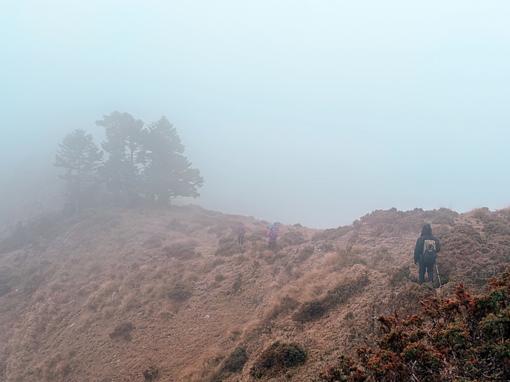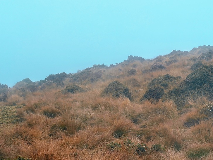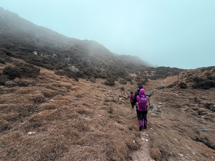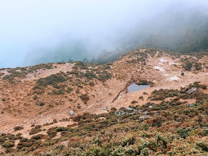 當我們終於翻過最後一道陡坡,卑南主山那著名的淺草坡已在眼前鋪展開來,這時雲霧更濃、虛無飄渺間卑南主山三角點若隱若顯就矗立在眼前。我拿起水壺,喝了一大口水,那清涼穿過喉嚨的瞬間,我才發現,卑南主山給我最好的禮物不是那絕美的視野,而是讓我明白:撤退從來不是失敗,而是為了讓這次的抵達,擁有一種更純粹、更厚實的重量。