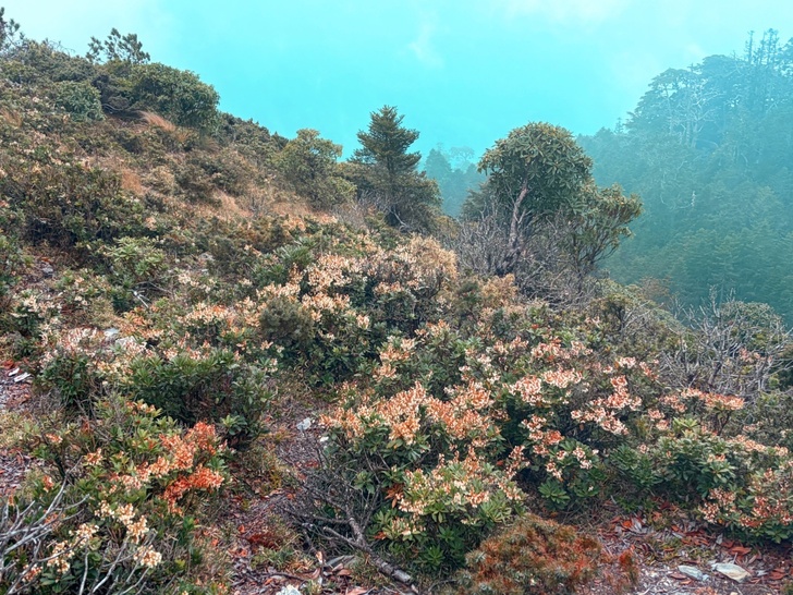 玉山杜鵑(森氏杜鵑)海拔較低的地方已綻放