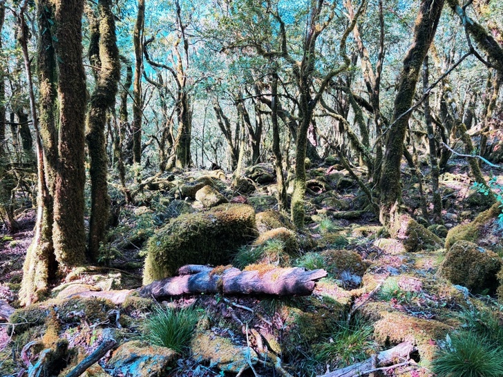 這座隱匿在原始林間的夢幻湖泊,扣人心弦得讓人忘了疲憊。看著那水平如鏡的水面,我突然意識到,這趟補考的意義,不僅在於那座南端的巔峰,更在於這份失而復得的從容。湖面靜謐得連一絲漣漪都像是驚擾,倒映在水裡的冷杉,比真實的樹林更顯深邃。所謂的圓滿,不只是抵達那個座標上的三角點,更是能在這座夢幻的湖泊旁,安靜地聽一次自己的心跳。