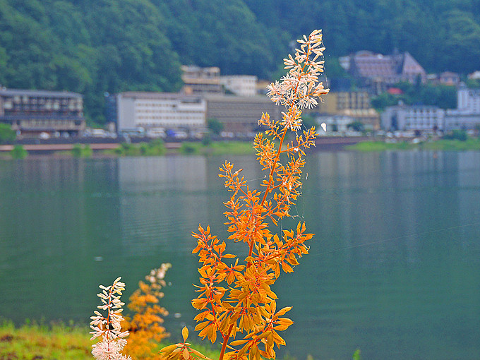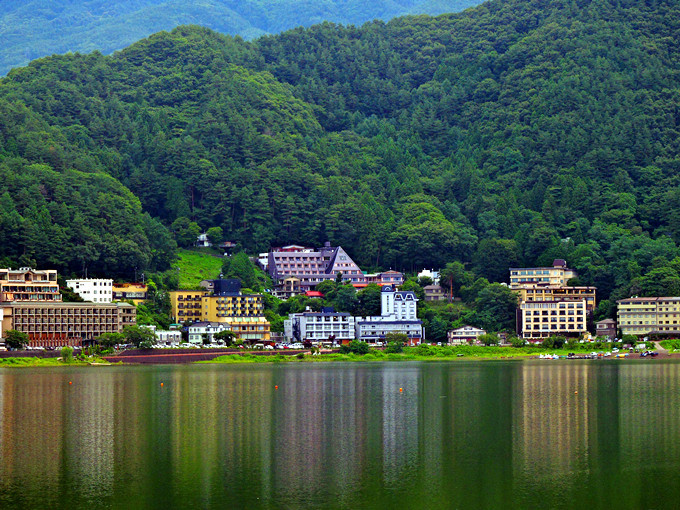 以選擇在湖畔舒適的和風旅館裡,盡情的享受浸泡在溫泉裡,遙望映照窗口