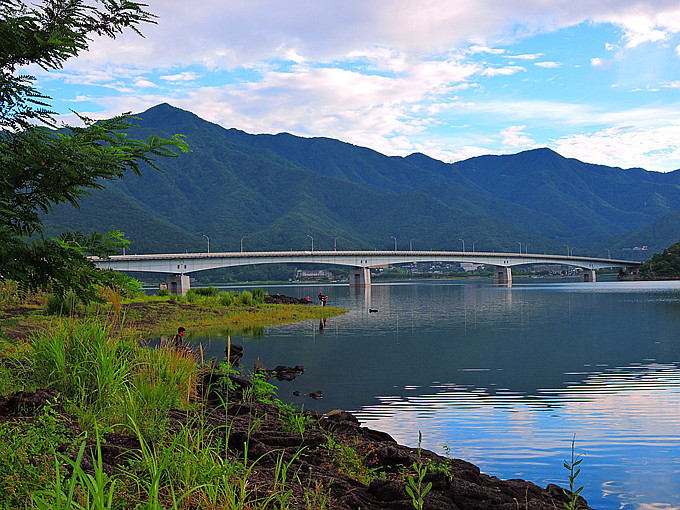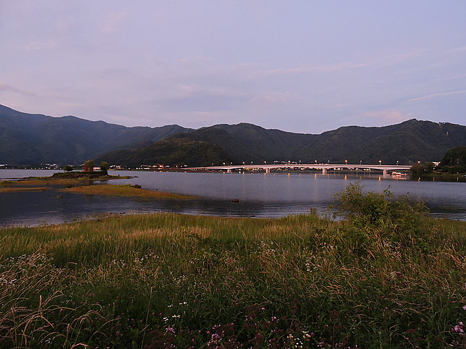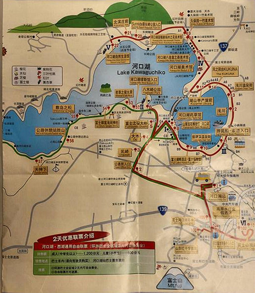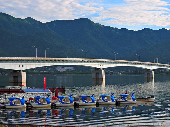湖」河口湖在富士五湖當中位置最北,擁有最長的湖岸線與最低的海拔。