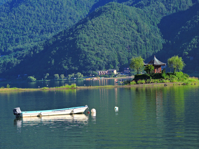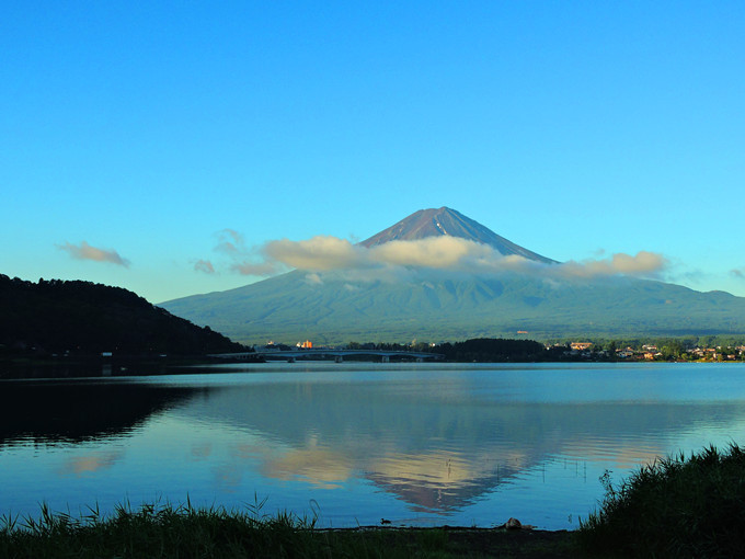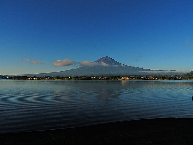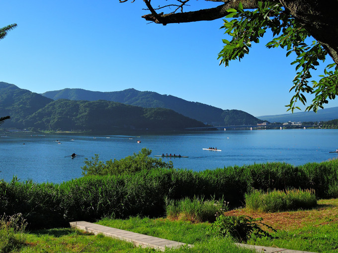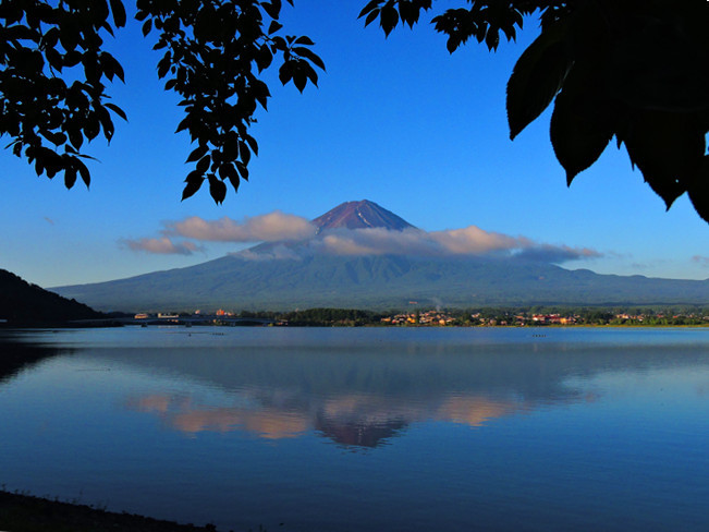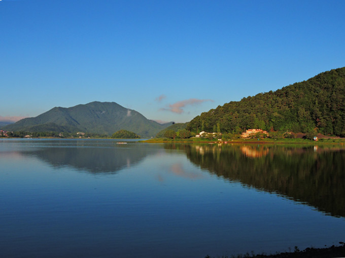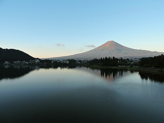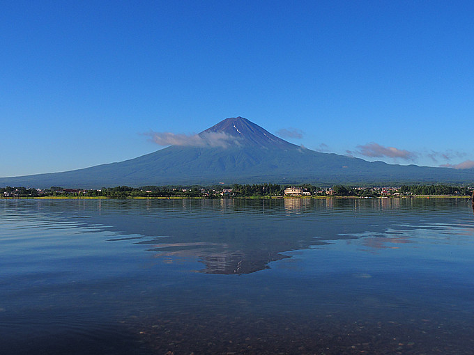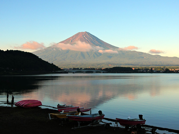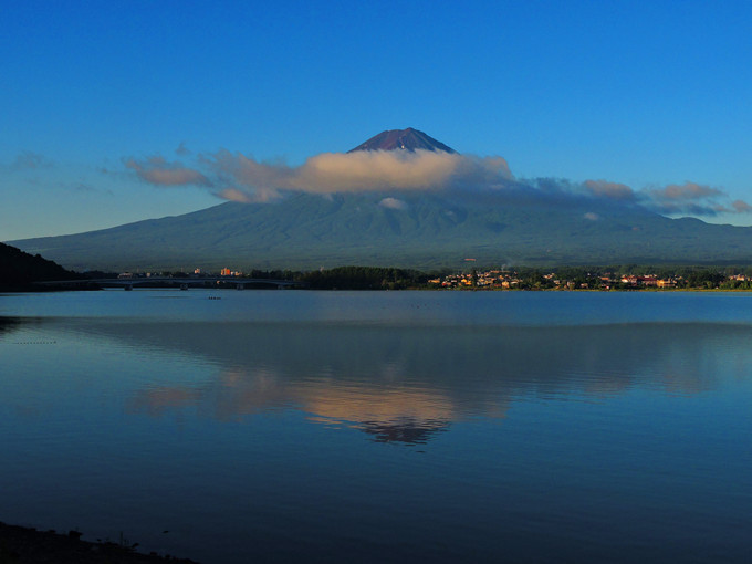 粼粼與美麗的富士山合而為一,平緩的山勢印在湖心,蕩漾出嶙峋有致,其