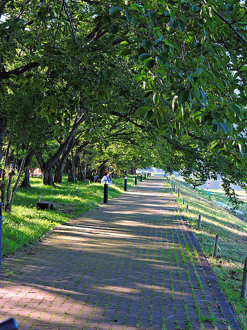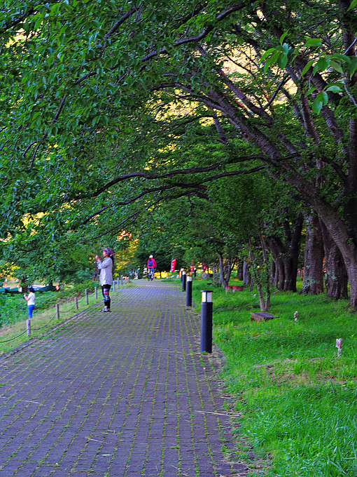 的微風中騎到大石公園,感覺特別舒爽不至流汗。沿岸都是櫻花樹隧道,有