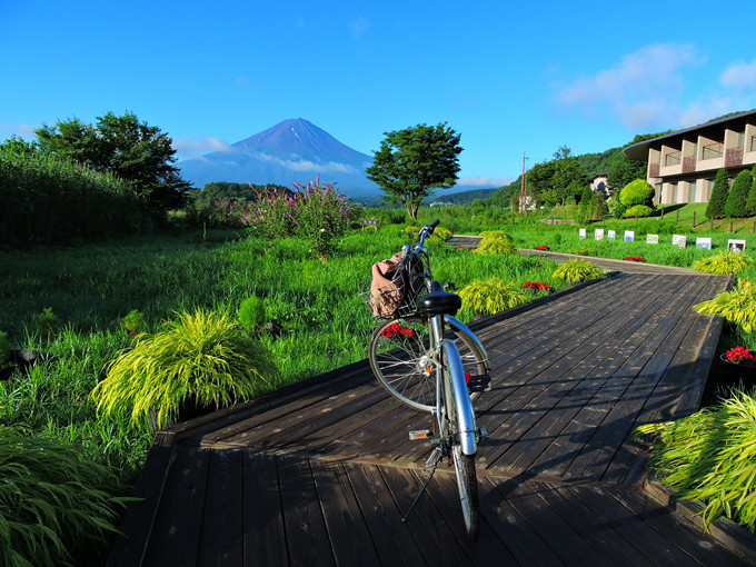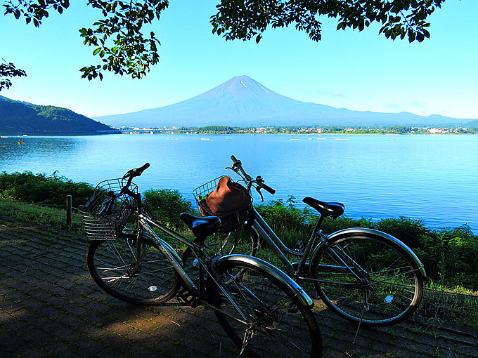 如騎在一條世外桃源,山明水秀的鄉間小路。對岸是曲線優美的富士山和靜