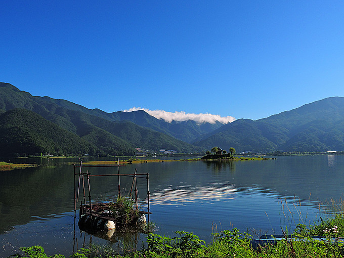 從湖裡我看見了另一個富士山,幾乎是同樣的藍天,飄著同樣的雲,宛若遊