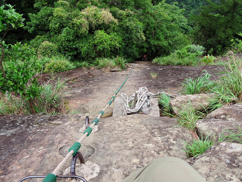 前面就是步道終點,須排隊一個一個拉繩索下到30公尺半山腰再繼續前進。