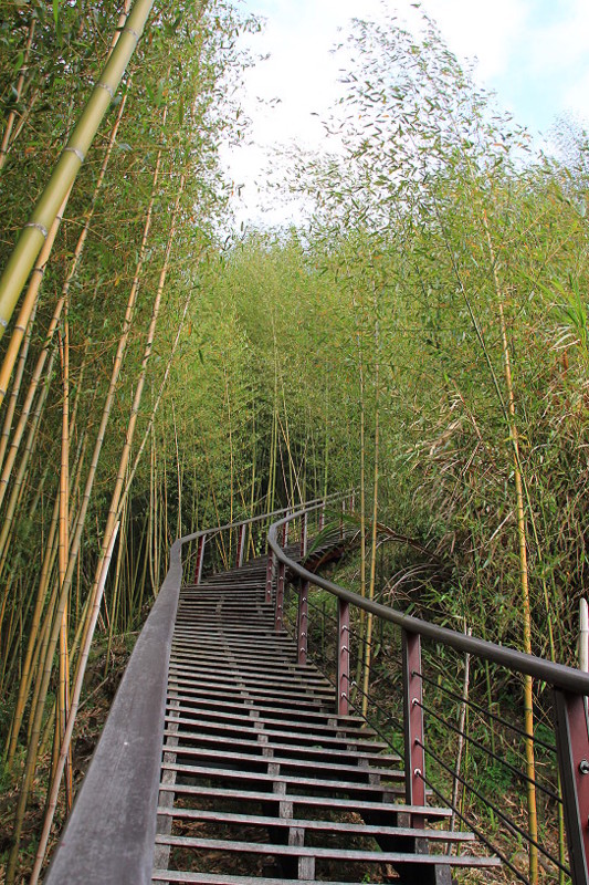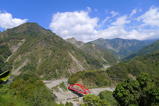在山裡紅色特別顯眼遠遠就瞧見橫跨溪谷中