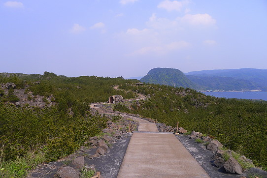 步道上建了幾個防空洞做為火山爆發時的避難所