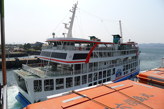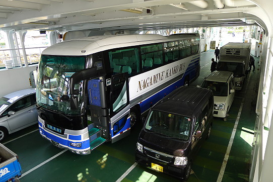 一艘貨輪可容納多台遊覽車及小客車,第一次搭遊覽車上船顯的特別新鮮,船行時間約半小時就到對岸,上船後大家紛紛下車到三樓去欣賞海上風光,誰都不願待在車上坐船。