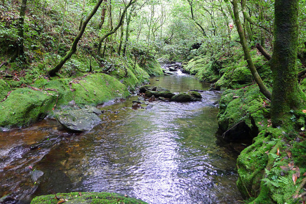 在水路上行走兩個多小時,水深處就得爬上溪邊沿岸而過,遇淺灘之處則直接涉水而行,