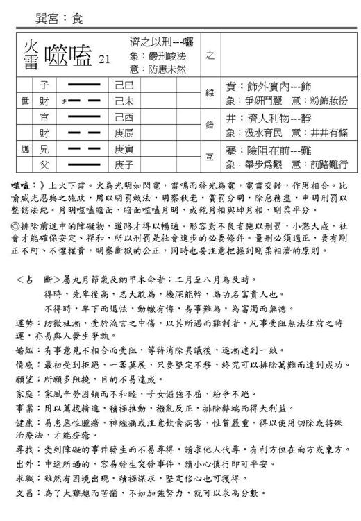 《噬嗑》屬九月及納甲者,功名富貴人也。