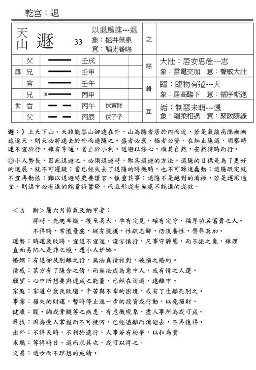 彖曰:遯亨,遯而亨也。剛當位而應,與時行也。小利貞,浸而長也。遯之時義大矣哉!