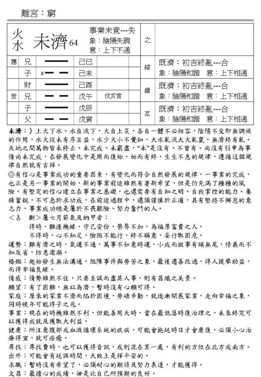 未濟:亨,小狐汔濟,濡其尾,無攸利。