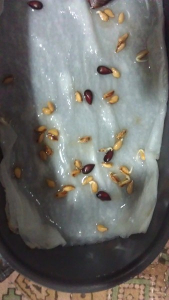 將石榴 蘋果種子洗淨泡水一晚後靜置陰乾