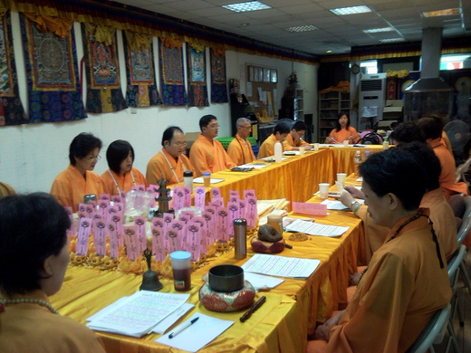 另外,在密七當中,有天下午蓮國法師去幫一位宗外人士助念,他帶著尊勝咒加持過的往生被和光明砂,一到現場,覺得磁場不太好,但一點上光明砂,磁場立刻轉變。再為祂蓋上往生被,進行助念儀軌後,痛苦的表情消失,浮現清淨安詳的面容,往生者的家人甚至覺得祂在微笑,讓在場的人都讚嘆佛菩薩的慈悲和密法的殊勝,這是蓮國法師為人助念十多年來,第一次在這麼短的時間內,有這麼好的感應。這也是我第一次持咒有如此殊勝的感應,師尊在『智慧的光環』一書提到:「密咒是法船、是禪定藏、是諸佛無盡法藏」,真是佛不虛言。但是,為何我之前持咒沒有這麼好的感應呢?我覺得關鍵在專心、持續和共修。在密七當中,我每天都持超過150遍的尊勝咒。又因為尊勝咒較難上手,持誦時更加專心。復在莊嚴的壇城前,和大家一起共修,這種力量當然比以前散亂又斷斷續續的力量強大,也只有這種持續集中的咒力,才能消除難以化解的業障。經過這次密七,我體悟到修行就像是鑽木取火,需要不斷的努力,才能生起火來。如果半途懈怠,生火所需要的溫度又會下降;如果犯戒,就像在木頭上潑冷水,要生火更加困難。而參加法會、拜懺甚至師尊加持,就像有人拿著火把,給你溫暖,幫你添加一些助燃物,最終生火還是要靠自己努力。衷心感恩師尊及諸佛菩薩的引領,讓我有機緣持唸尊勝咒,藉由咒力解除痛苦。感恩淨心同修會的堂主和蓮國法師,帶領同門在莊嚴的道場中,安適而精進的持咒,並在近期內再辦尊勝精進班,使更多同門得霑殊勝法緣;感恩無法參加密七同修,卻在家更精進持咒,激勵我努力的同門。師尊在「咒的魔力」寫過一偈,在此和同門共勉:「世人念咒莫躊躇。罪障惡業最易除。深知娑婆為囚檻。名利只是火中燭。生老病死平常事。親情起滅實還虛。深入佛咒修持起。他年極樂任安居。」