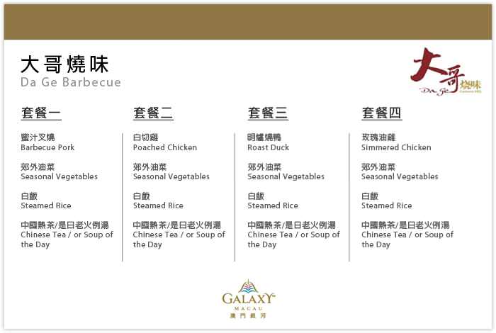 大哥燒味 (Da Ge Barbecue) 套餐餐單[± 顯示/隱藏]