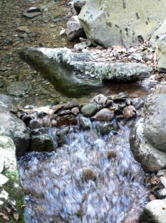 這張是到坪頂古圳趴趴走時拍的,那時一群大大小小人走了好長一段的羊腸小徑,到底時眼前豁然開朗出一片涓溪塊石,小孩們開心的步下沁涼溪水,一會打水漂兒、一會在溪裡堆疊起他們口中的“小水壩”,臨走,小小年紀的他們主動將小石子搬移,復原景觀。