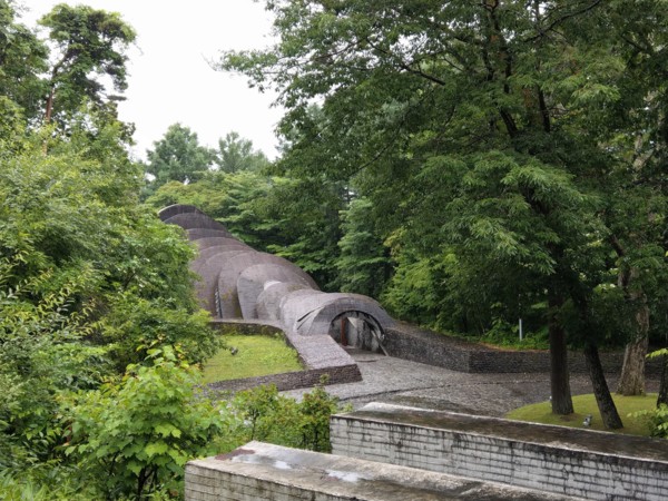 離開「石之教會」後,雨勢越來越大,途經原廣司設計的「田崎美術館」(1986年日本建築學會獎),本想入內欣賞美術館有名的雲形屋根、幾何學壁面、中庭等建築設計和永久保存展示的田崎廣助作品,但全身濕漉的狼狽樣實在不適合入館,所以只在入口觀望一下。後來在下山路上瞧見「少年自然的家」的園圃,很好奇這是什麼組織單位啊?!因此時已來到山下,想想淋了大半天的雨,夠有“濕意”了,遂搭電車返回輕井澤小木屋。