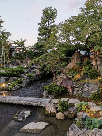 園裡部分庭木、800多顆庭石和茶室「香雲亭」、「和樂庵」都是從角倉了以舊宅邸移築而來。